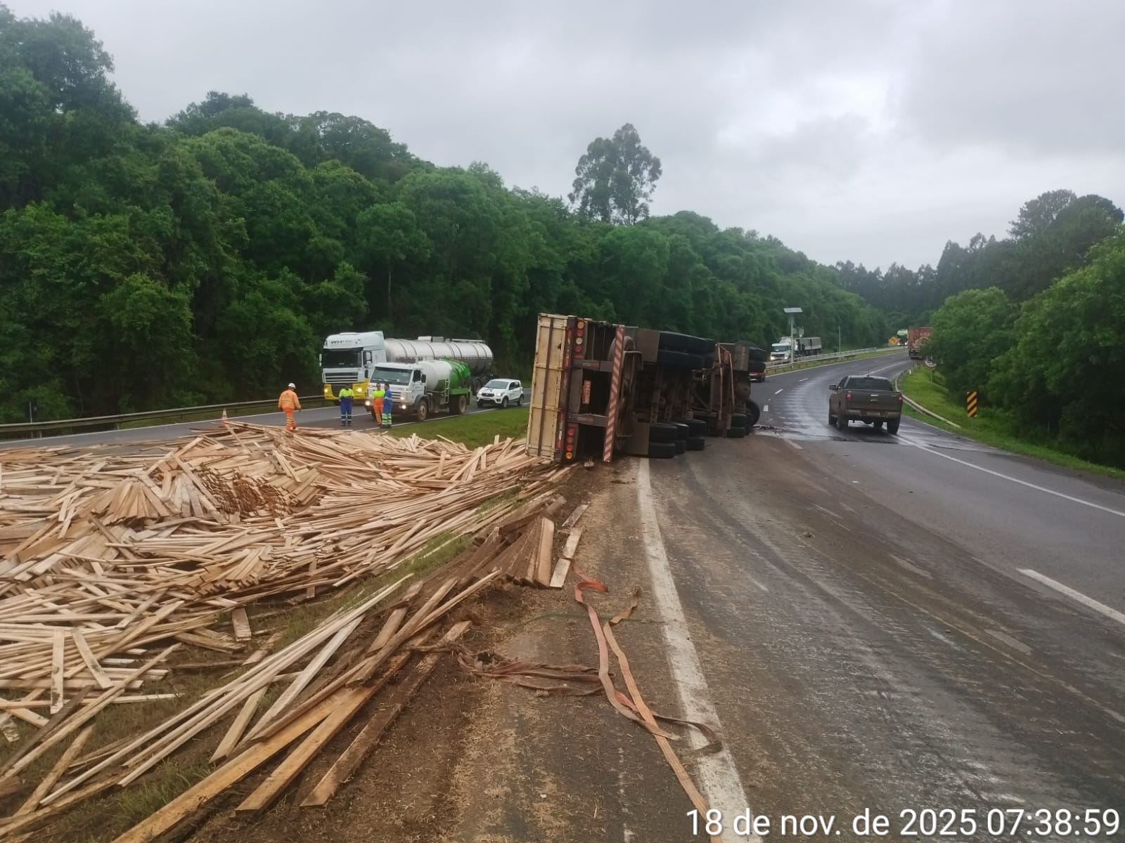 De acordo com informações da Polícia Rodoviária Estadual, o conjunto veicular seguia no sentido Castro–Piraí do Sul quando o motorista perdeu o controle e acabou tombando às margens da rodovia.
