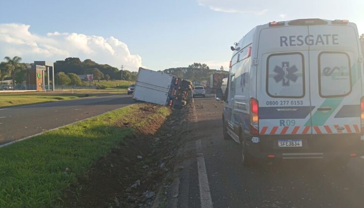 Caminhão tomba na PR-151 entre Castro e Carambeí e deixa motorista ferido