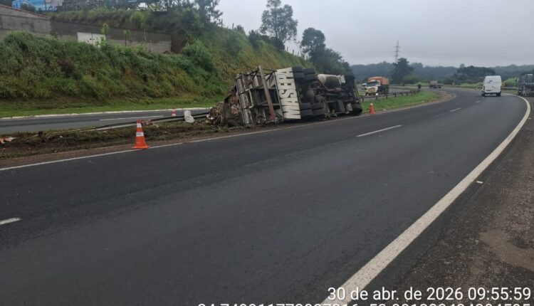 As circunstâncias exatas do tombamento não foram detalhadas no atendimento inicial, e deverão ser apuradas pelas autoridades competentes. Equipes da Polícia Rodoviária estiveram no local para sinalização da via e controle do tráfego, garantindo a segurança dos demais motoristas que passavam pelo trecho.