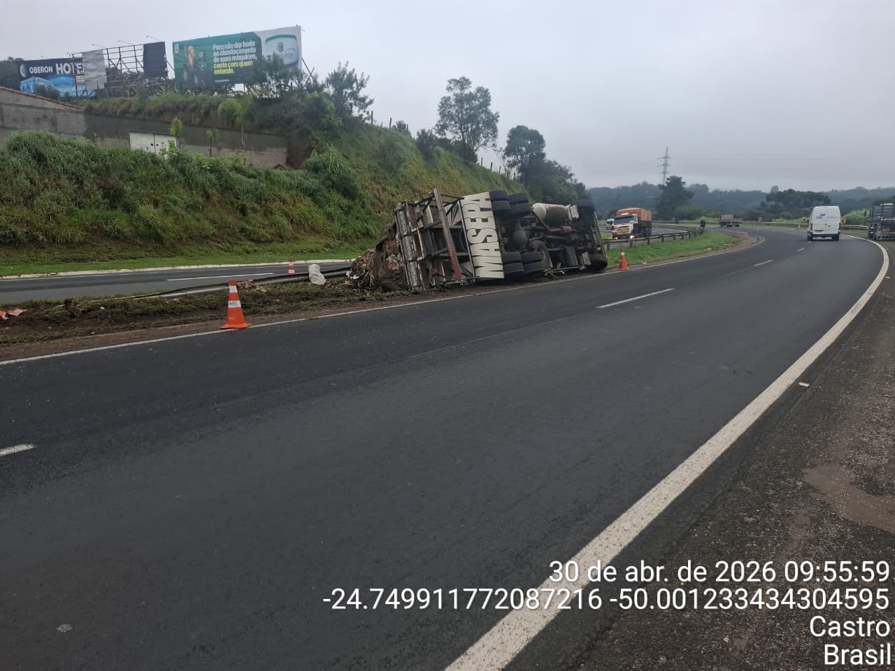 De acordo com informações da Polícia Militar do Paraná, por meio do Batalhão de Polícia Rodoviária (BPRv), o caminhão seguia no sentido Piraí do Sul a Castro quando, ao atingir o ponto indicado, se envolveu em um sinistro do tipo tombamento.