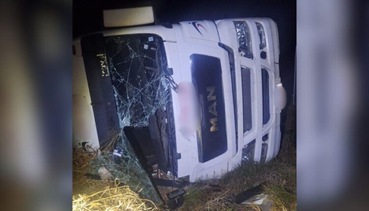 Caminhão tomba na PR-239 entre Arapoti e Ventania; não houve feridos
