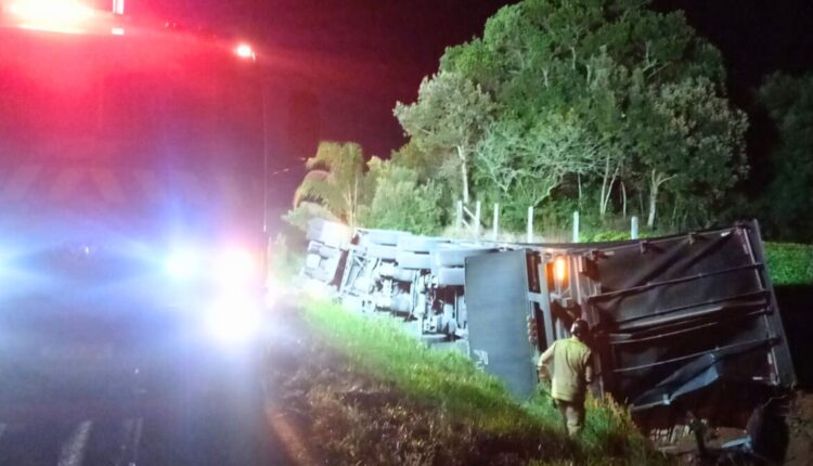 Ponta Grossa – Caminhão tombou na noite de quinta-feira (12) na PR-438, no km 51+700 metros, em Ponta Grossa, nos Campos Gerais. O acidente foi registrado por volta das 21h30 e resultou em ferimentos leves no motorista, que precisou ser encaminhado para atendimento hospitalar.
