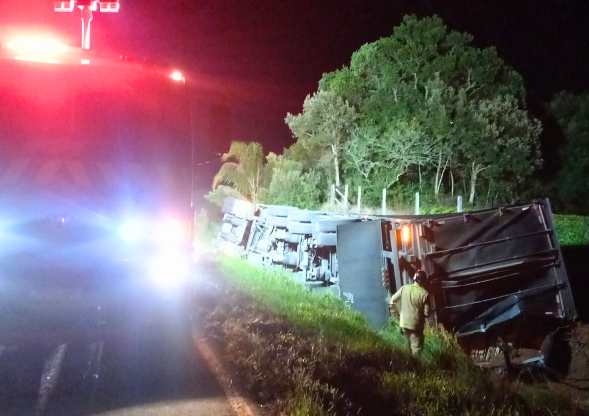De acordo com informações da Polícia Rodoviária Estadual (PRE), o veículo Scania R460, com placas de Jaguaruna (SC), tracionando um semirreboque Randon, seguia pela rodovia no sentido Guaragi para Ponta Grossa quando, ao atingir o referido quilômetro, acabou se envolvendo em um sinistro do tipo tombamento.