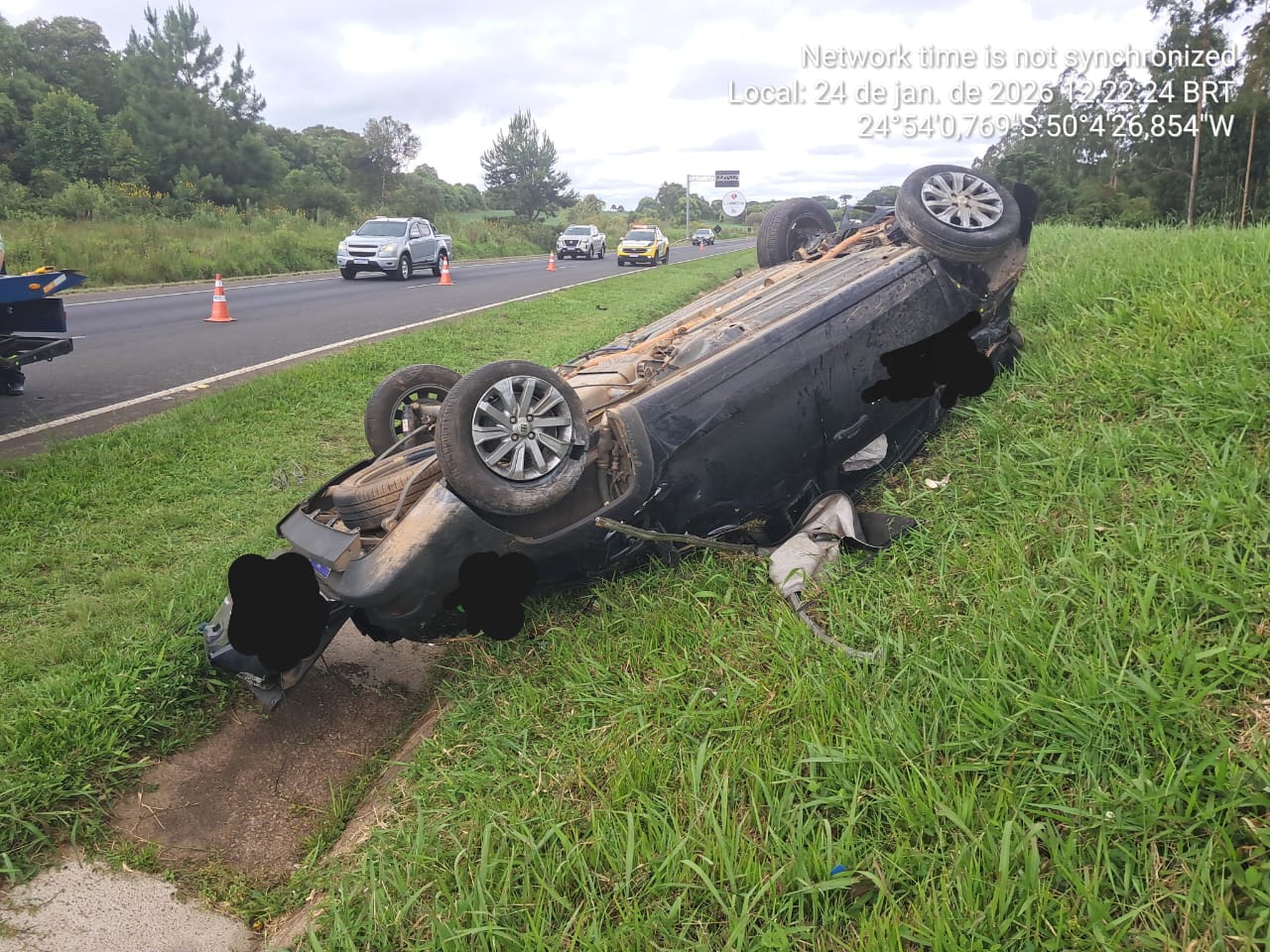 Carambeí – Capotamento registrado no sábado (24) deixou duas pessoas feridas na PR-151, em Carambeí, nos Campos Gerais do Paraná. O sinistro aconteceu por volta das 11h, no km 303+200 metros da rodovia estadual, em um trecho próximo à Fazenda São Daniel, e mobilizou equipes da Polícia Rodoviária Estadual.
