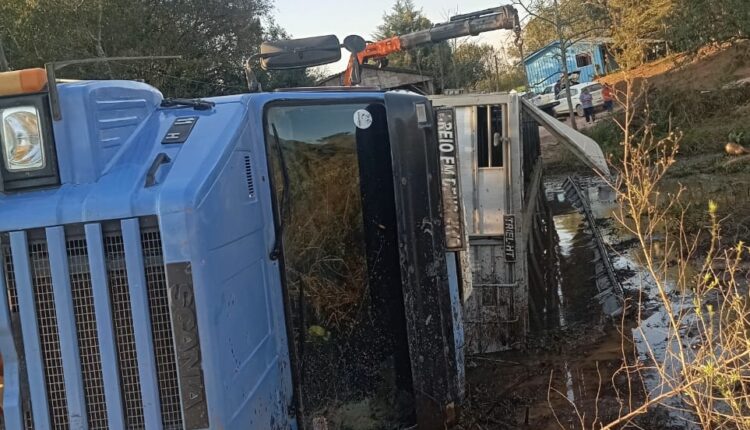 Uma carreta Scania tombou nesta terça-feira (6) na entrada de uma propriedade no bairro Três Pinheiros, na zona rural de Castro. O veículo transportava suínos, destinados a um produtor associado à Cooperativa Castrolanda.