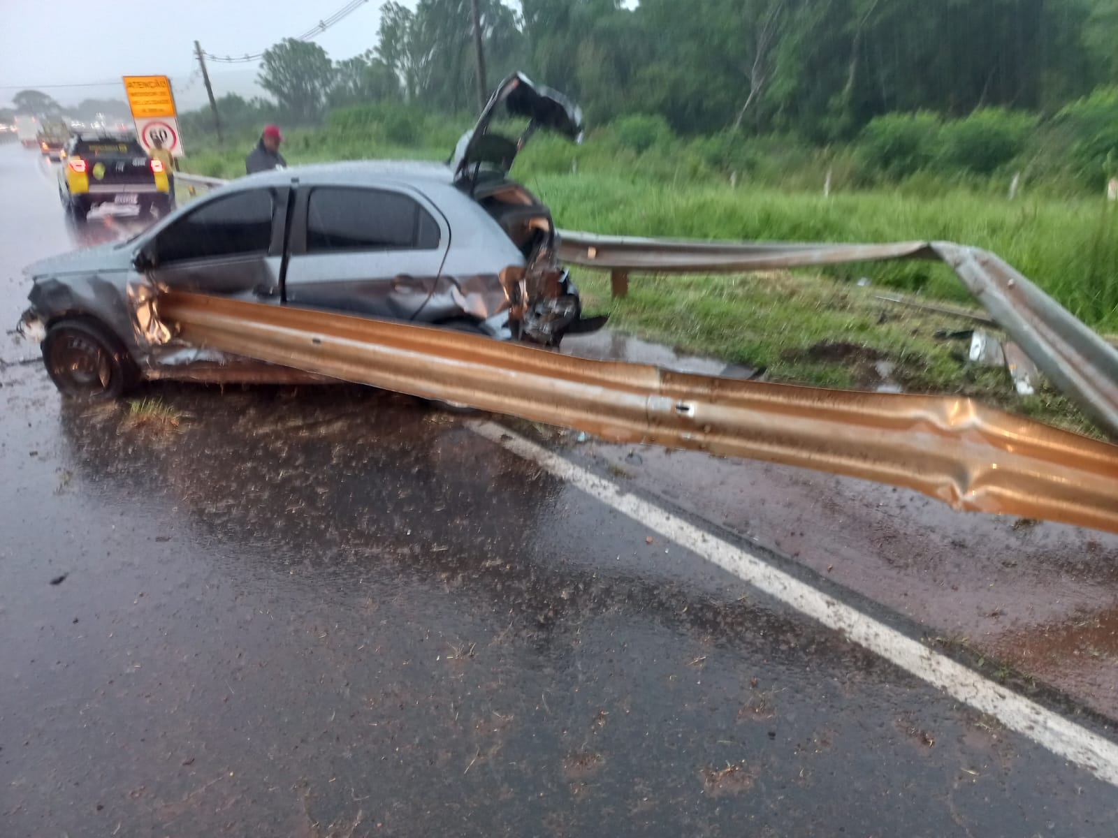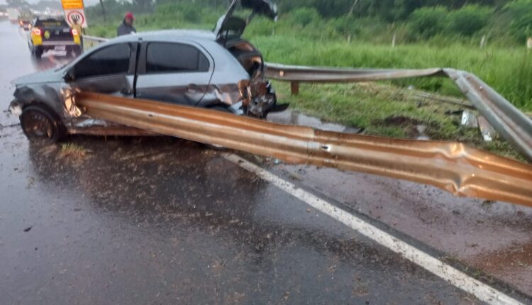 Carro bate contra defensa metálica entre Ponta Grossa e Carambeí