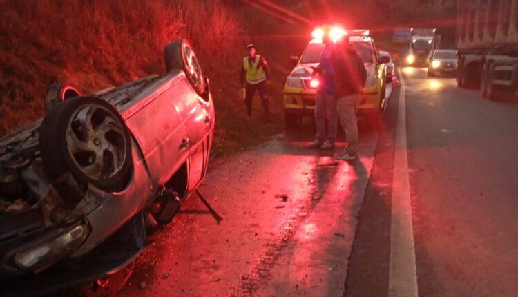 Carro capota na PR-340 em Telêmaco Borba; motorista não se feriu