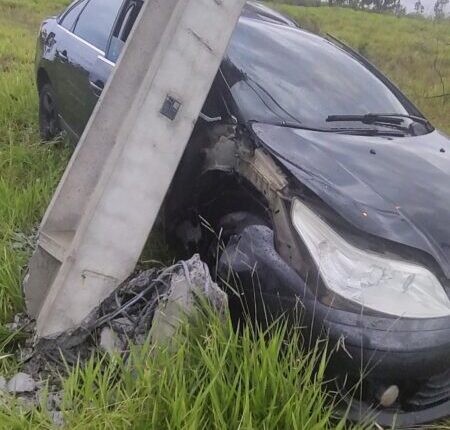 Citroën C4, que trafegava sentido Uvaranas, perdeu o controle, rodou na via e colidiu com um poste.