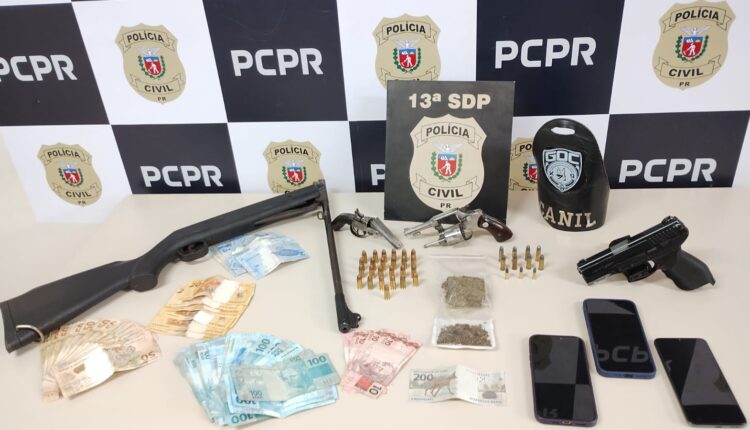 Além das armas e das munições, foi apreendido também um tijolo de maconha que foi localizado pelo cão Bolt- que vem unindo forças e ganhando notoriedade com a Polícia Civil no combate ao tráfico de drogas em Ponta Grossa.