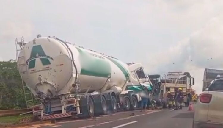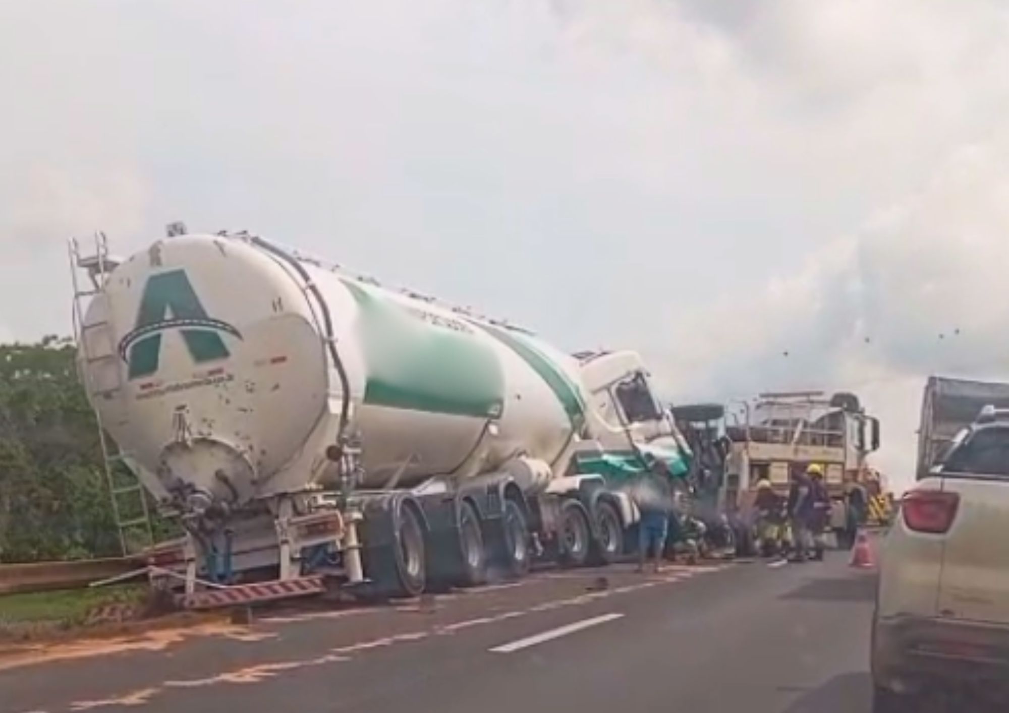 De acordo com as primeiras informações, o acidente envolveu uma carreta e outro veículo de carga que trafegavam pela rodovia. As circunstâncias da colisão ainda estão sendo apuradas, e não há informações oficiais sobre feridos até o momento.