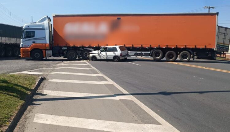 De acordo com a corporação, a ocorrência envolveu a colisão entre um automóvel e um caminhão. Apesar do impacto, não houve registro de vítimas.