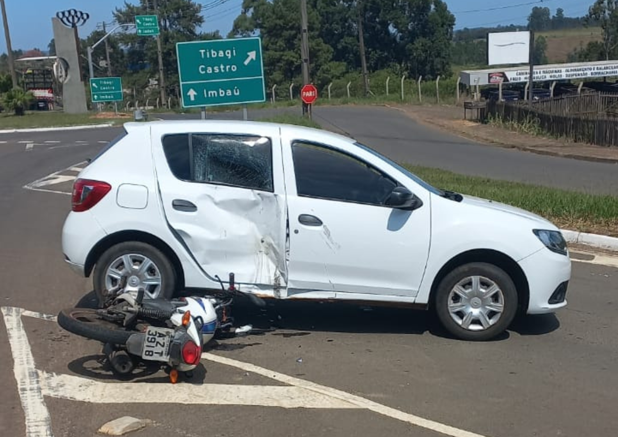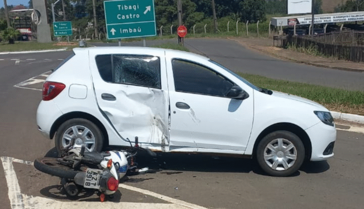 A ocorrência envolveu um Renault Sandero, com placas de Telêmaco Borba, conduzido por um jovem de 20 anos, que não sofreu ferimentos, e uma motocicleta Honda CG 150 Titan, também emplacada no município.