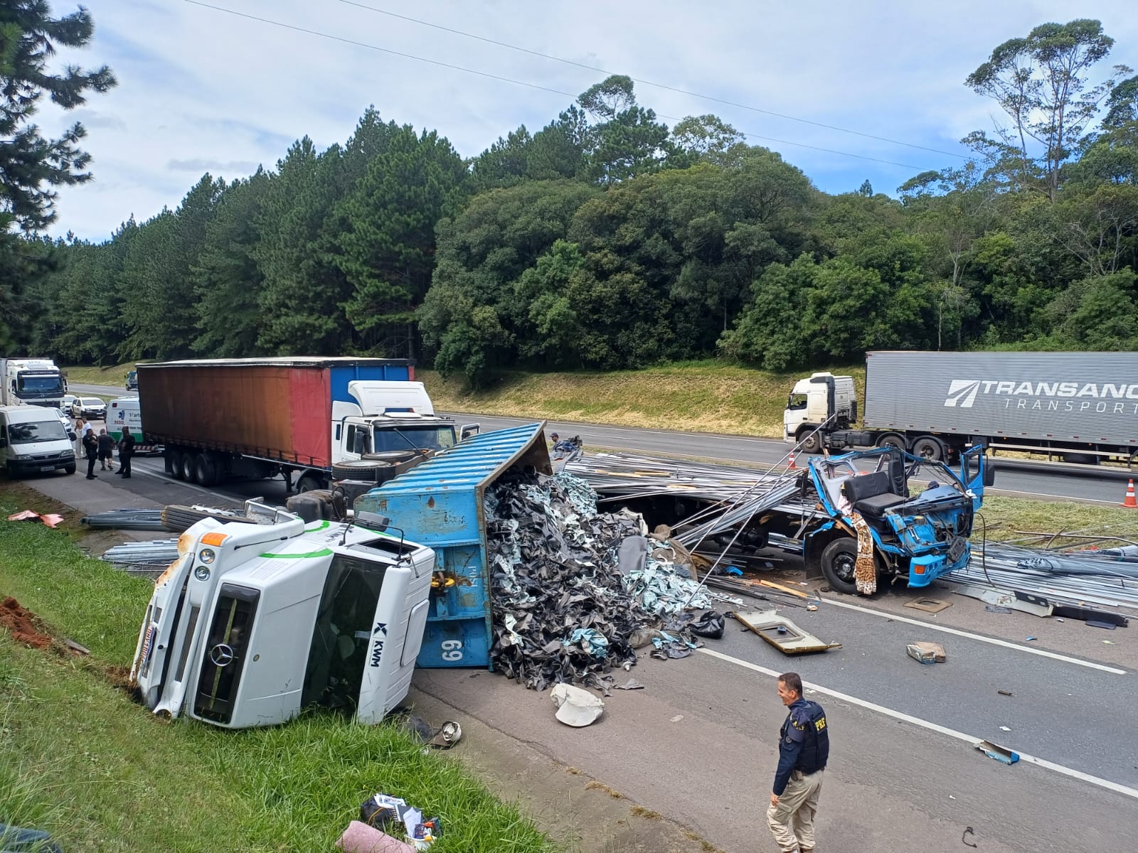 A batida aconteceu no km 79 da BR-116, no sentido Curitiba, e resultou na interdição total da pista, causando transtornos e retenção no tráfego durante o atendimento da ocorrência.