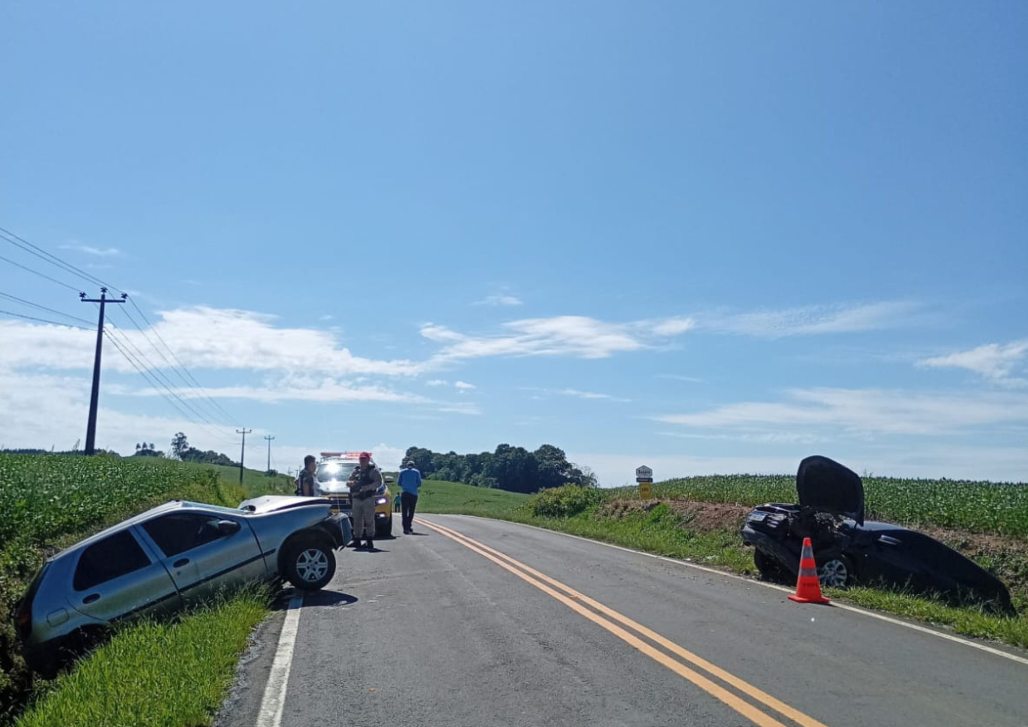 Conforme levantamento realizado no local, os automóveis seguiam em sentidos opostos quando colidiram frontalmente. O condutor do Onix, de 43 anos, não sofreu ferimentos.