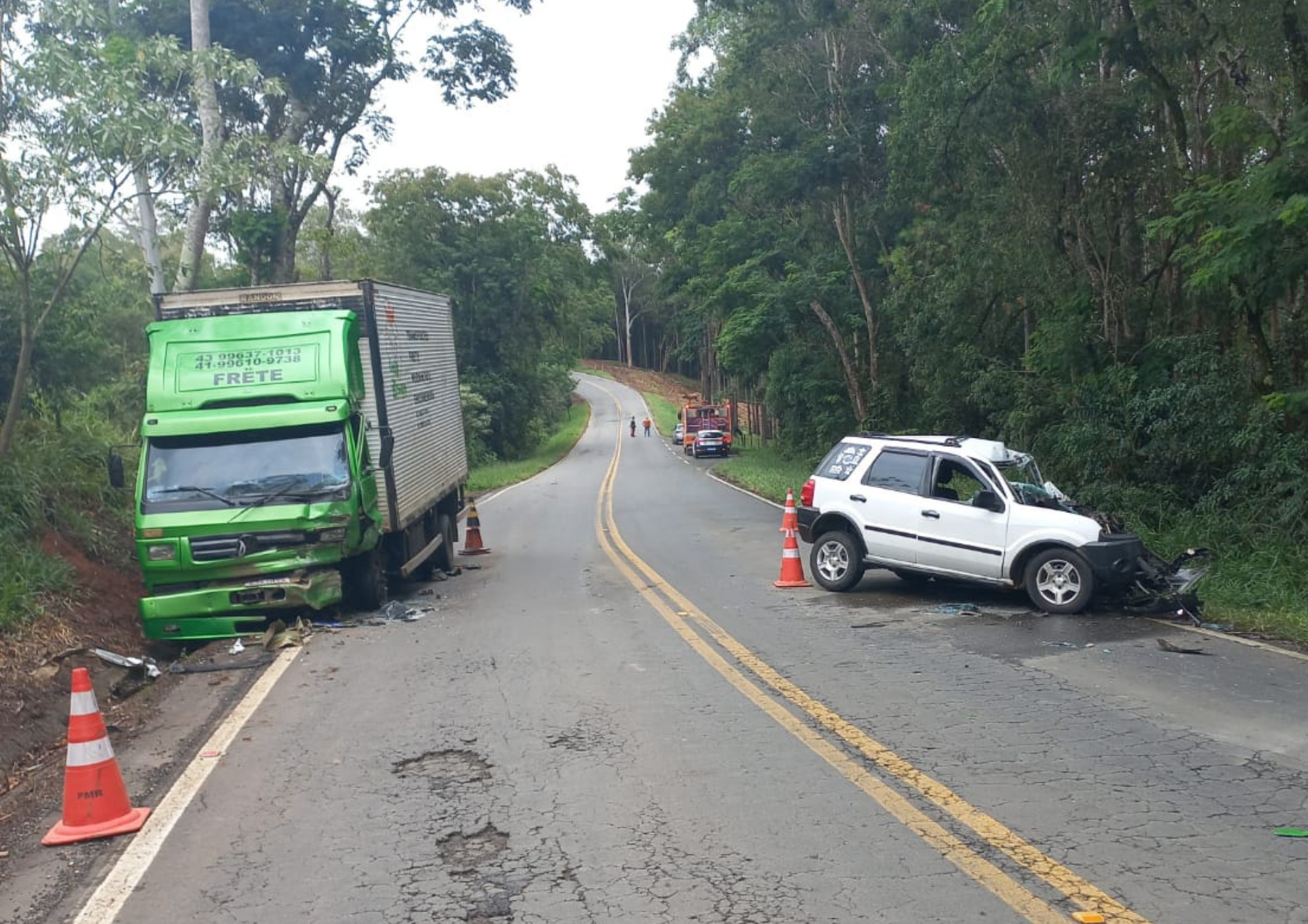 De acordo com informações do Batalhão de Polícia Rodoviária (BPRv), o acidente aconteceu por volta das 7h30 e envolveu um Ford Ecosport, com placas de Ponta Grossa, e um caminhão VW 8.150, emplacado em Colombo.