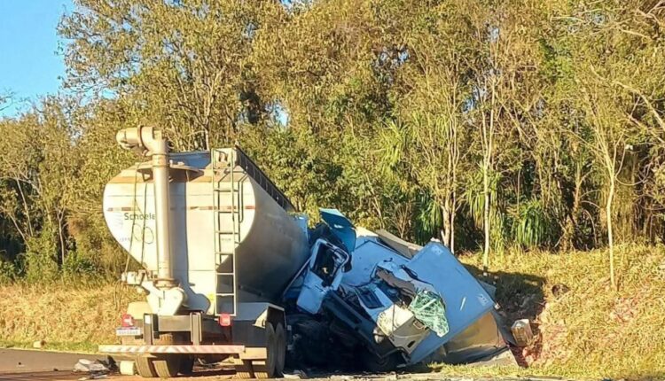Colisão frontal entre caminhões deixa um morto e dois feridos na BR-153 em Tibagi