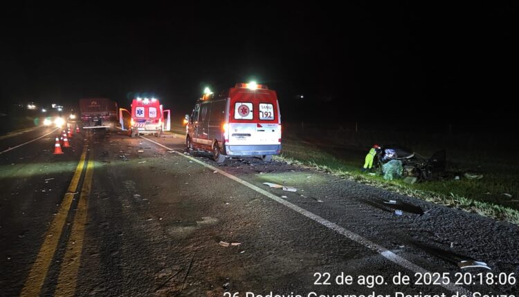 Colisão frontal entre carro e caminhão deixa um ferido na PR-092 em Arapoti