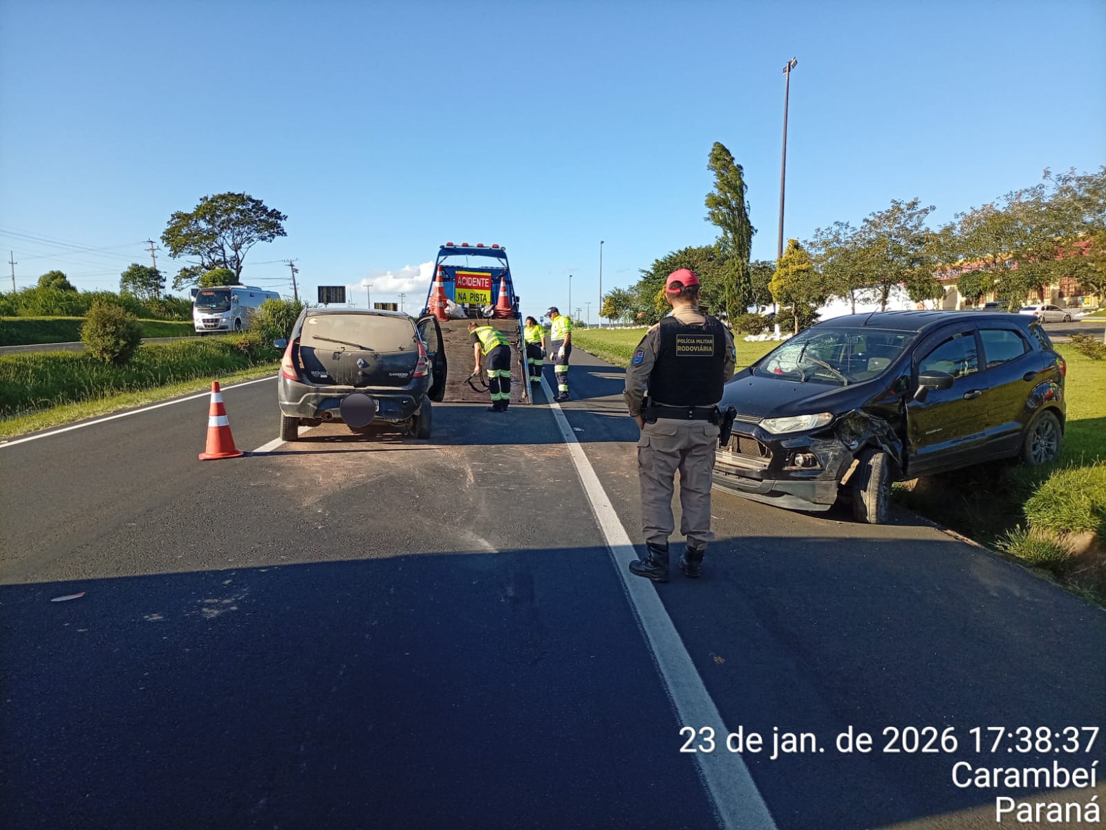 Conforme o relato policial, o Renault Sandero trafegava no sentido Ponta Grossa–Carambeí quando foi atingido na traseira pelo Ford EcoSport, que seguia no mesmo sentido da via.