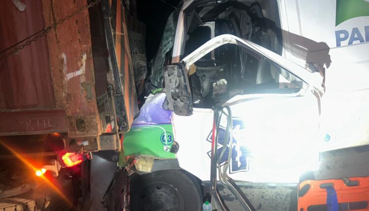 Colisão traseira entre ambulância e caminhão deixa três feridos na BR-376