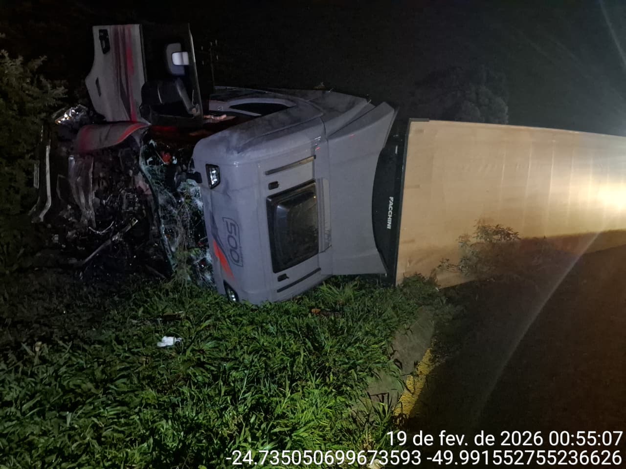 Acidente ocorreu na noite desta quarta-feira (18), no trecho entre Castro e Piraí do Sul