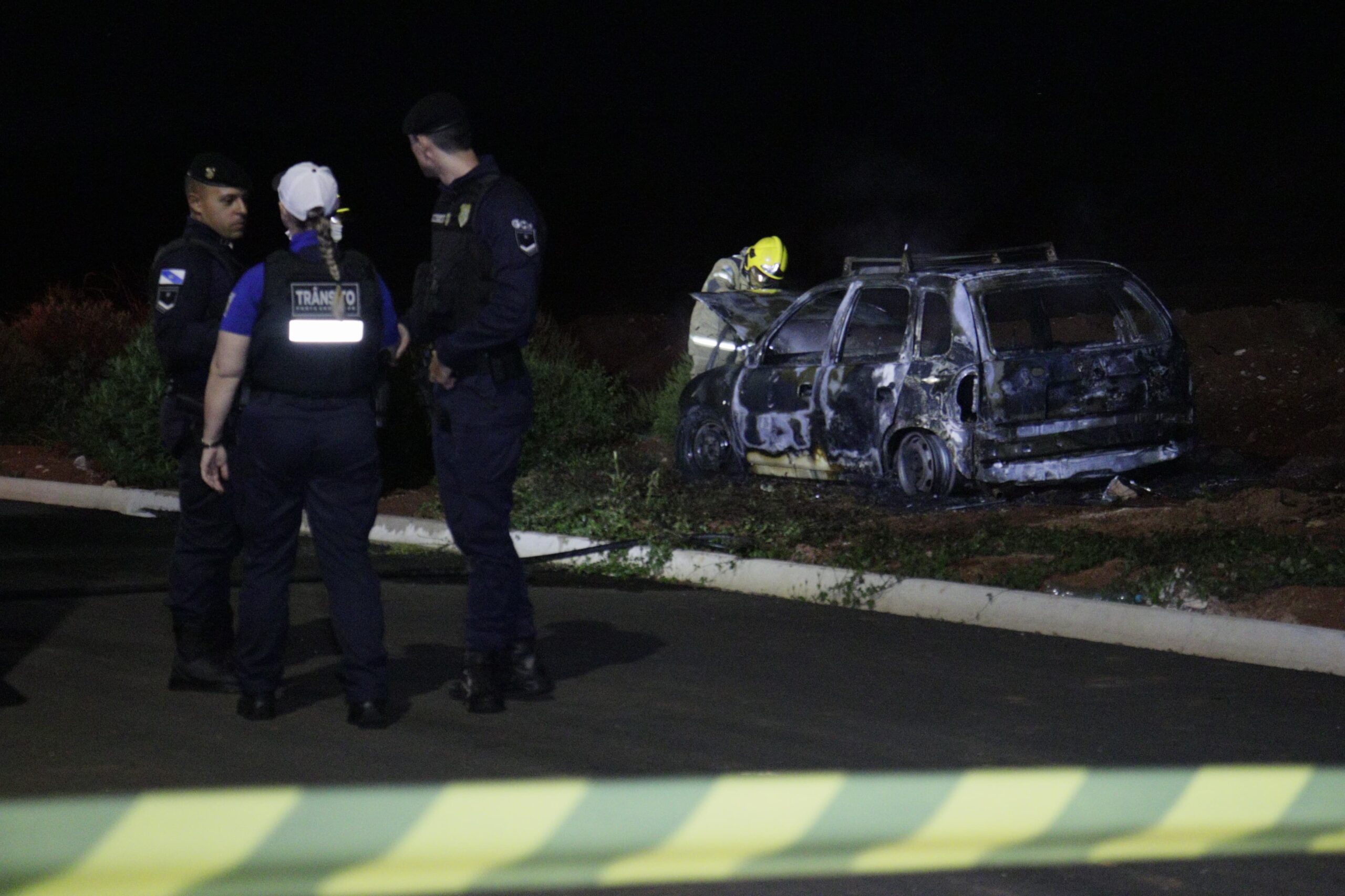 Após a extinção das chamas, foi constatada a presença de um corpo carbonizado no interior do veículo. Em razão do estado da vítima, não foi possível realizar a identificação no local.