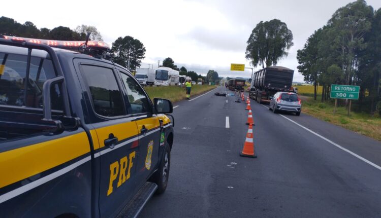 Palmeira – Grave acidente registrado na manhã deste sábado (15), no km 538 da BR-376, região da Colônia Witmarsum, em Palmeira, resultou na morte do condutor de uma motocicleta. A colisão envolveu caminhão Scania 540, com placas de Brochier (RS), e a moto Yamaha Fazer 250, de Ribeirão do Pinhal. O corpo do motociclista ficou sobre uma das faixas da pista até a sua remoção.