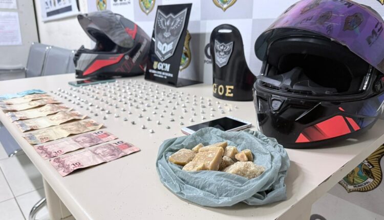 Na sequência, a equipe retornou ao local onde a sacola havia sido arremessada. Dentro do recipiente, os guardas encontraram aproximadamente 500 gramas de uma substância análoga ao crack, além de dinheiro em notas diversas, o que reforçou a suspeita de envolvimento com o tráfico de drogas.