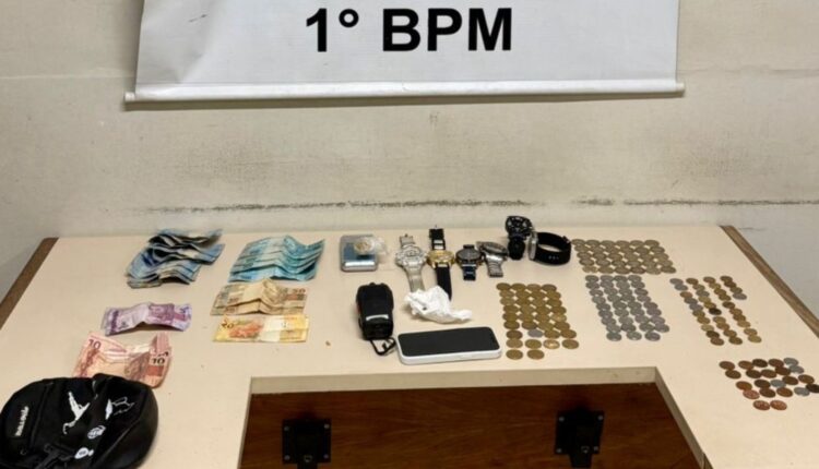 Durante a ação, PM apreendeu drogas, dinheiro, relógios, balança de precisão e motocicleta adulterada