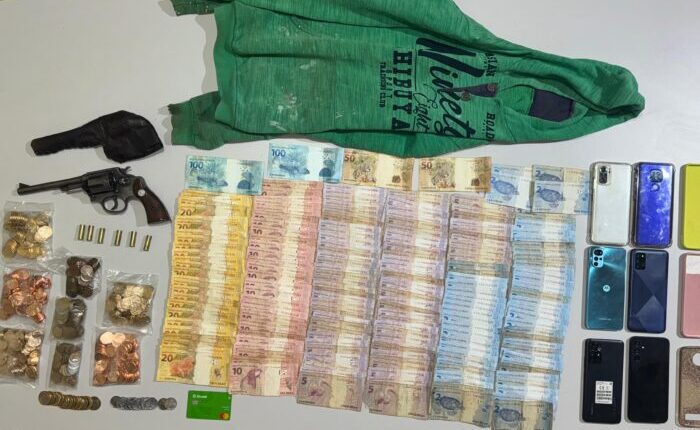 Durante o atendimento, a Polícia Militar recebeu informações sobre o paradeiro dos autores. No local indicado, os policiais foram recebidos a tiros, revidando para conter a agressão. Dois dos autores foram detidos e presos em flagrante, com revólver calibre .38, munições deflagradas, dinheiro e seis celulares possivelmente oriundos dos crimes. O valor total encontrado pela PM foi de R$1.701,05 em dinheiro. Um terceiro envolvido foi identificado, mas ainda não localizado.
