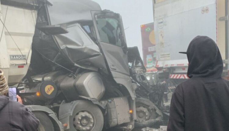 O acidente ocorreu no sentido Norte-Sul da rodovia, em um trecho onde, segundo motoristas que passavam pelo local, uma forte neblina reduzia significativamente a visibilidade. A condição climática adversa pode ter sido um fator determinante para o engavetamento.