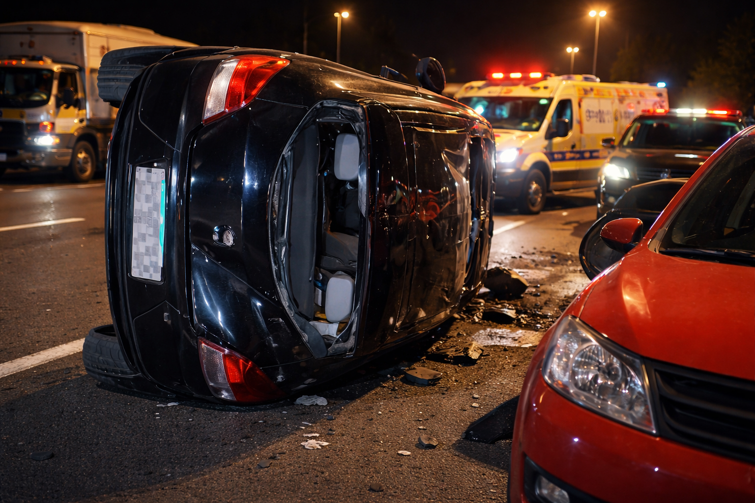 Acidente registrado na última quinta-feira (16) envolveu carros e caminhão, com tombamento na pista