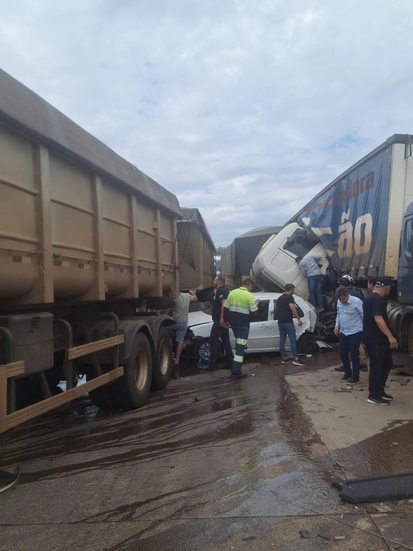 • Engavetamento com sete veículos deixa um morto e ao menos três feridos na BR-163