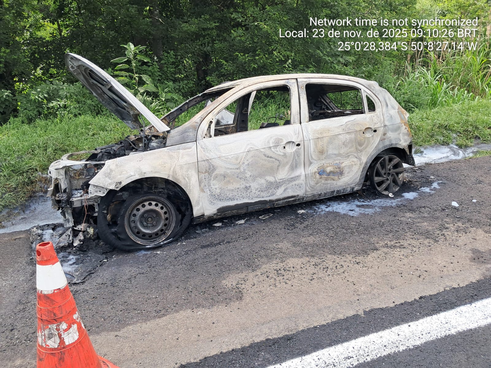 Segundo a Polícia Militar Rodoviária (PMRv), o carro seguia sentido Carambeí quando, por motivos ainda desconhecidos, começou a pegar fogo. Após o incêndio, o condutor abandonou o automóvel e fugiu, não sendo mais localizado pela equipe policial. Até o momento, não há identificação do motorista.