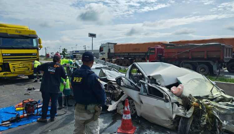 Colisão no km 102 envolve caminhão e dois automóveis