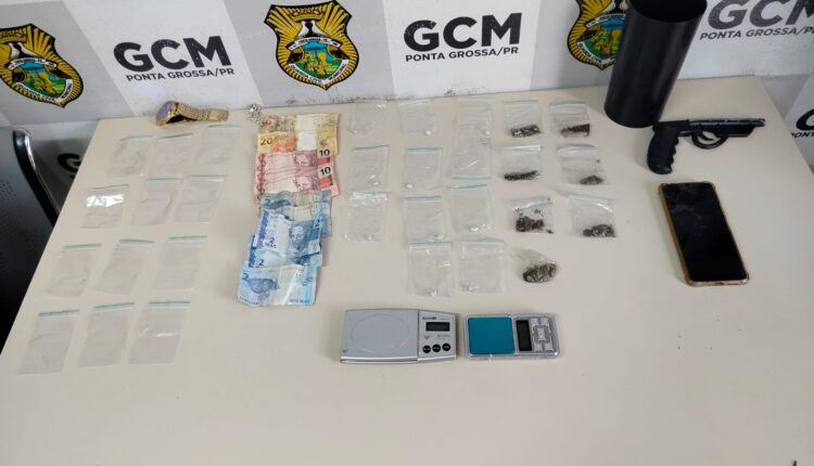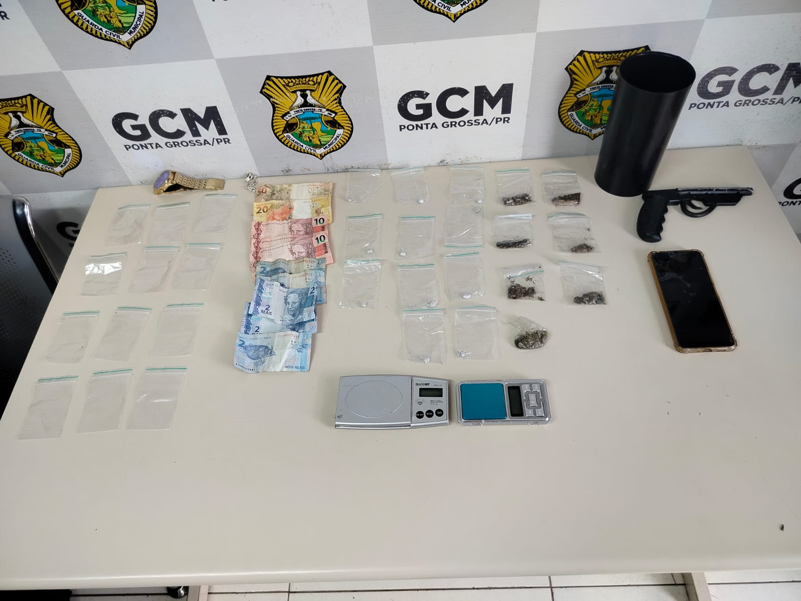 Ponta Grossa – Homem foi preso na quarta-feira (25) por tráfico de drogas e desobediência no bairro Contorno, em Ponta Grossa, após tentar fugir de uma abordagem da Guarda Civil Municipal.