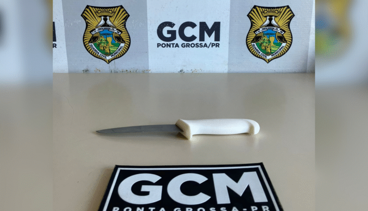 Ponta Grossa – Homem foi preso na manhã desta quarta-feira (18) após ameaçar a proprietária de uma pensão no bairro Contorno, em Ponta Grossa. De acordo com a Guarda Civil Municipal, a equipe realizava patrulhamento pela região quando foi abordada por uma mulher, visivelmente abalada, relatando que um de seus inquilinos havia feito ameaças utilizando uma faca de açougue.