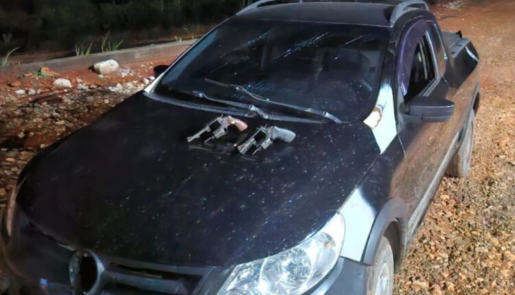 De imediato, os policiais iniciaram diligências e localizaram o veículo suspeito trafegando pela rodovia PR-090. “Realizamos a abordagem e, em busca pessoal no condutor, nada de ilícito foi encontrado. No entanto, durante a vistoria no interior do carro, localizamos dois revólveres calibre .38, ambos com a numeração raspada”, relatou a PM.