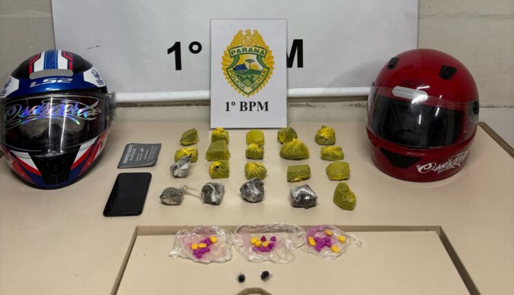 Ao todo, foram apreendidos 30 comprimidos de ecstasy, 482 gramas de maconha fracionadas em 20 porções, um cigarro da mesma substância e duas unidades de “Dry” — droga sintética derivada do haxixe. Também foram recolhidos um celular e a motocicleta utilizada pelo casal.