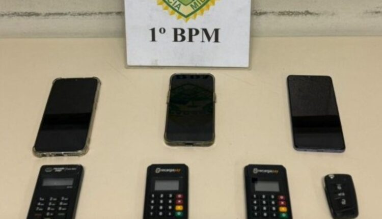 Durante a abordagem, nada de ilícito foi encontrado com o suspeito, mas no interior do carro os policiais localizaram diversos produtos semelhantes aos usados no golpe — incluindo jogos de cama, uma parafusadeira, três máquinas de cartão e três celulares.