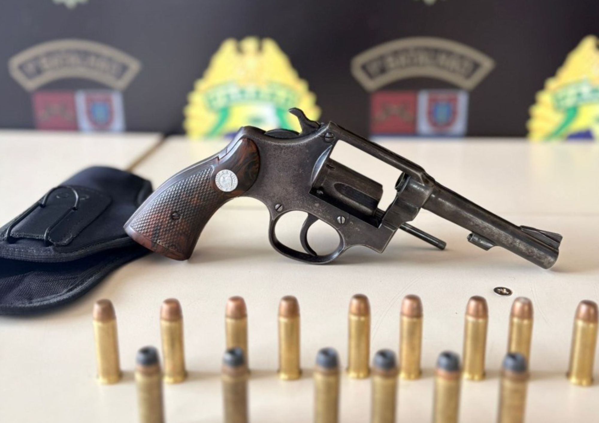 Ação da Polícia Militar apreendeu revólver calibre .38, coldre e 15 munições