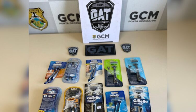 Por volta das 10h40, a equipe do GAT Bravo avistou um indivíduo tentando se esconder em um terreno baldio nas proximidades do CMEI Eliziane do Rocio Hilgemberb Manys. A atitude suspeita motivou a abordagem. Na revista pessoal, os guardas não encontraram nada ilícito, mas a busca na mochila que ele carregava revelou dez embalagens de aparelhos de barbear de diferentes marcas, todas ainda com as etiquetas de uma farmácia.