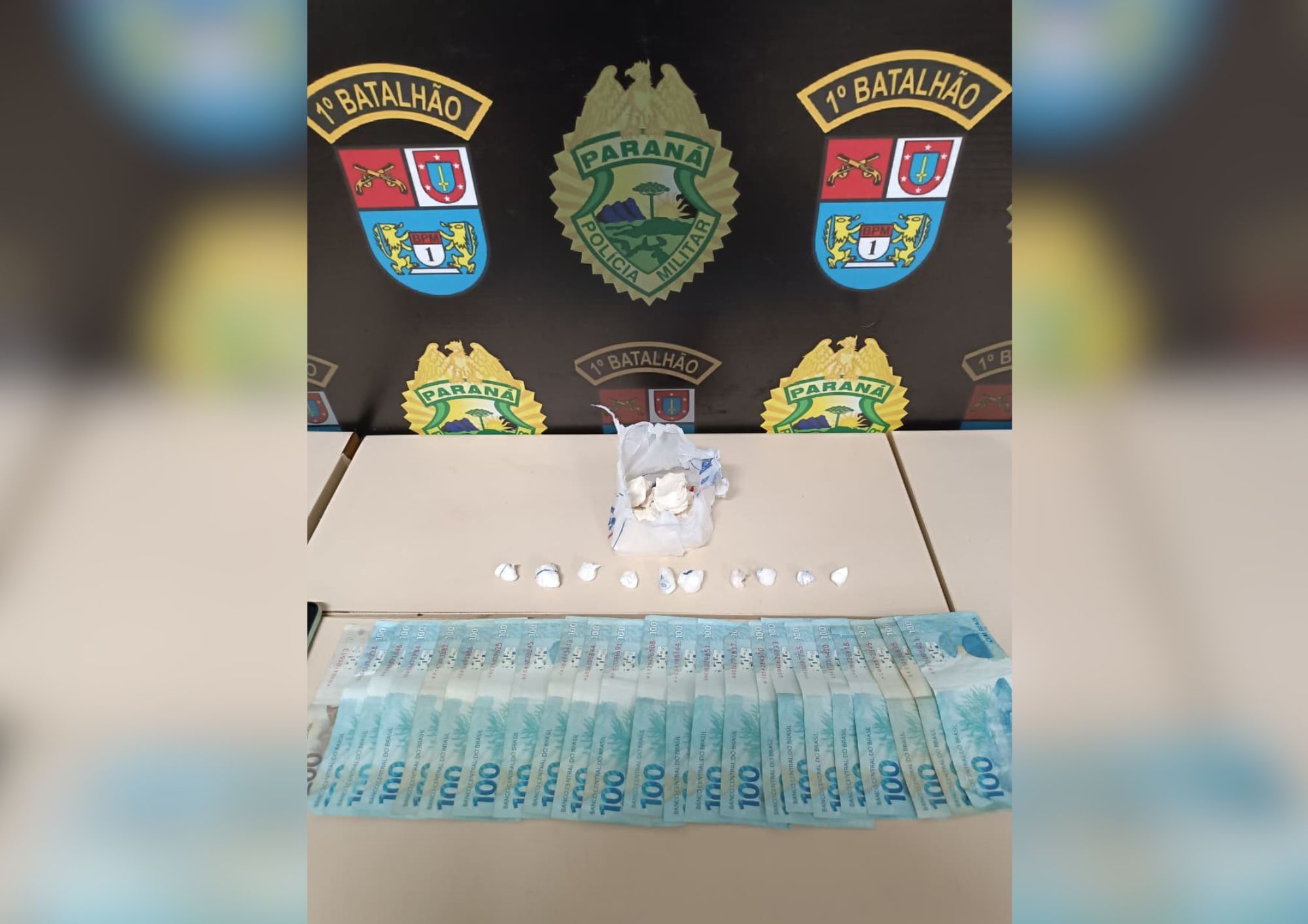De acordo com a Polícia Militar, o suspeito conduzia um veículo VW/Gol quando foi abordado pelos agentes. Durante a revista pessoal e no interior do automóvel, foram encontrados aproximadamente 111 gramas de substância análoga à cocaína, além de R$ 2.400,00 em dinheiro.