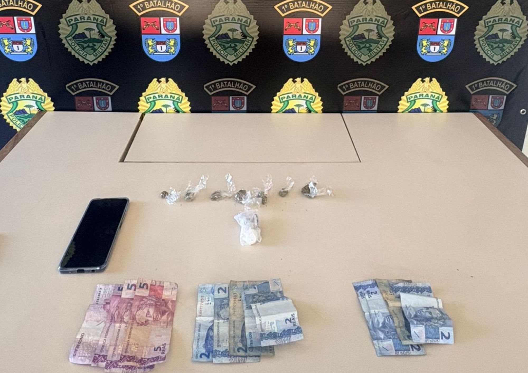 Abordagem ocorreu durante patrulhamento em área conhecida pelo comércio ilegal; drogas e dinheiro foram apreendidos