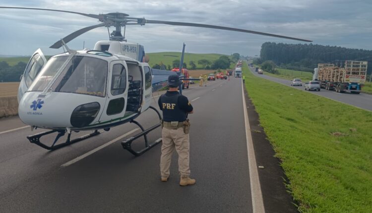 Idoso fica gravemente ferido após saída de pista na BR-376 e rodovia é interditada para pouso de helicóptero