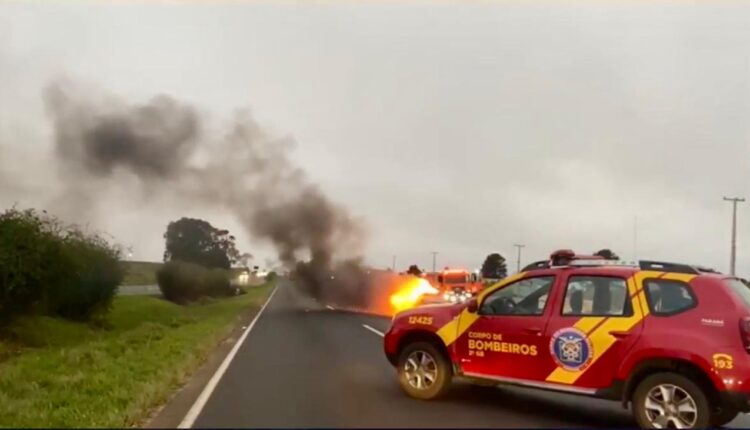 Carambeí – Incêndio em um veículo na manhã desta quarta-feira (31) mobilizou a equipe da Defesa Civil de Carambeí e o 2º Grupamento de Bombeiros de Ponta Grossa. Foi por volta das 7 horas, no km 312 da rodovia PR-151, na faixa sentido Ponta Grossa a Carambeí. As chamas consumiram um Peugeot 307 sedan, causando transtornos no tráfego local.