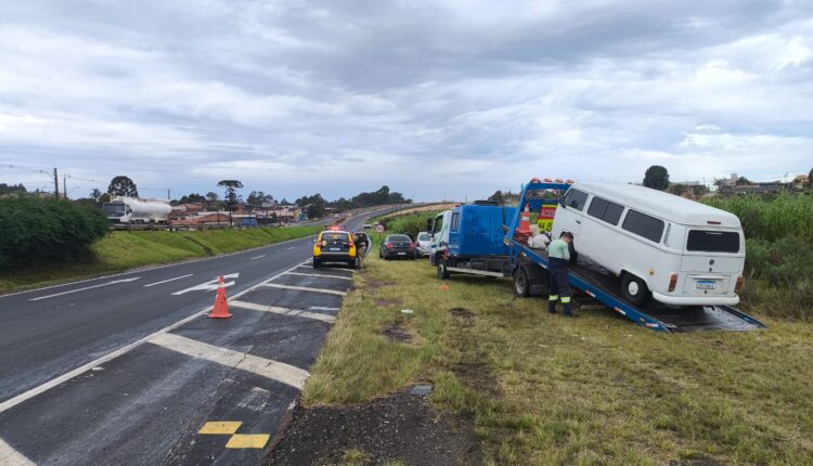 Carambeí – Acidente registrado na manhã desta segunda-feira (19) mobilizou equipes da Polícia Rodoviária Estadual (PRE) no trecho da PR-151 entre Castro e Carambeí. A ocorrência, por volta das 8h, no km 309+600 metros da rodovia, envolveu uma Kombi com placas de Castro que transportava seis pessoas.