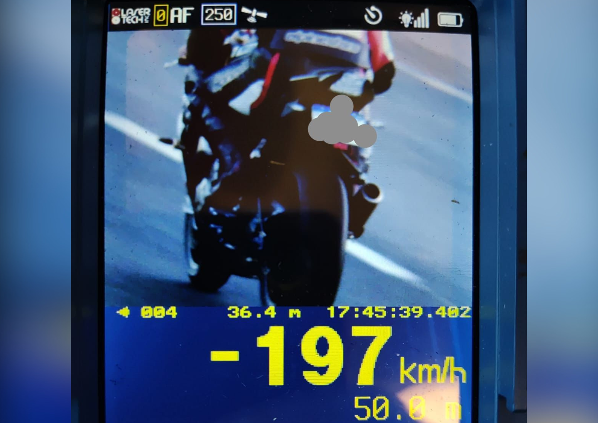 Castro – Uma motocicleta foi flagrada trafegando a 197 km/h na PR-151, no km 276+500 metros, em Castro, nos Campos Gerais. O registro foi realizado por meio de radar de fiscalização da Polícia Militar do Paraná (PMPR), no sábado (11).