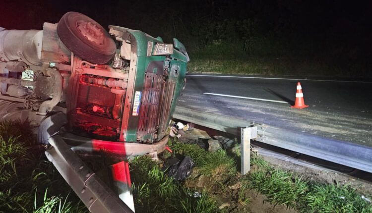 Motorista de 73 anos morre após tombamento de caminhão na BR-376, em Ipiranga