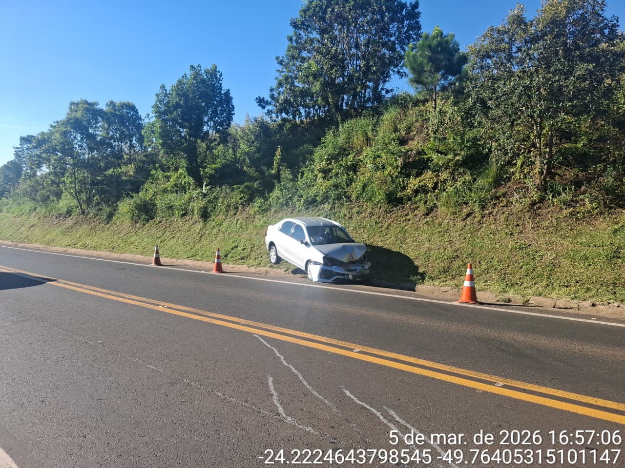 Ainda conforme os dados coletados, o Toyota Etios trafegava pela PR-092 entre os municípios de Arapoti e Jaguariaíva, porém não foi possível precisar o sentido da viagem nem identificar com qual veículo teria ocorrido a colisão.