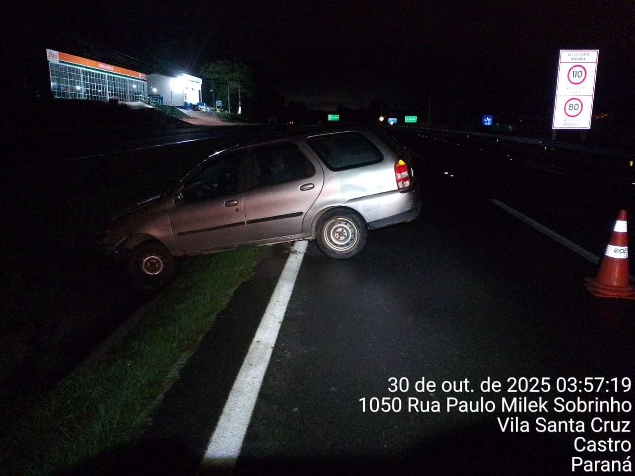 De acordo com informações da Polícia Rodoviária Estadual (PRE), o motorista conduzia um Fiat Palio, com placas de Castro, no sentido Piraí do Sul–Castro, quando perdeu o controle do veículo e acabou se envolvendo no sinistro. O impacto causou danos materiais no automóvel e ferimentos leves no condutor, identificado pelas iniciais A.S.L.